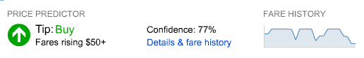The big selling point was the prominance of the price predictor and the fare history.  This is where the “decision” with booking flights comes into play.  This was the cleanest presentation of the where prices had been and where they might be going – it was the perfect stock ticker for travel.