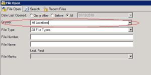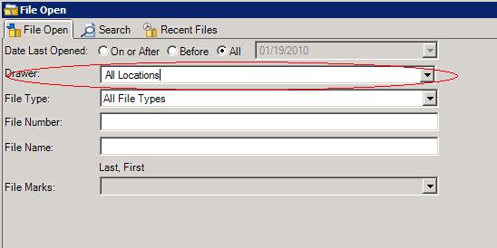and file type of the file you are looking for. In this example, the drawer selection defaults to “All Locations,” but depending on your personal settings, it may default to a particular drawer that is used most often.